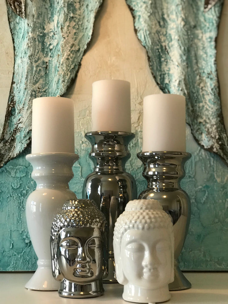 Enjoy the presence of natural lights with this shinning candleholders. Candle pillars accent the decor into a welcoming space and offer a contemporary take on classic, modernist design. Ideal for displaying on tabletop surfaces in the living room, bedroom or dining room. Made of ceramic base & framework, these candleholders are highly sturdy and allows them to stand firmly on tabletops.