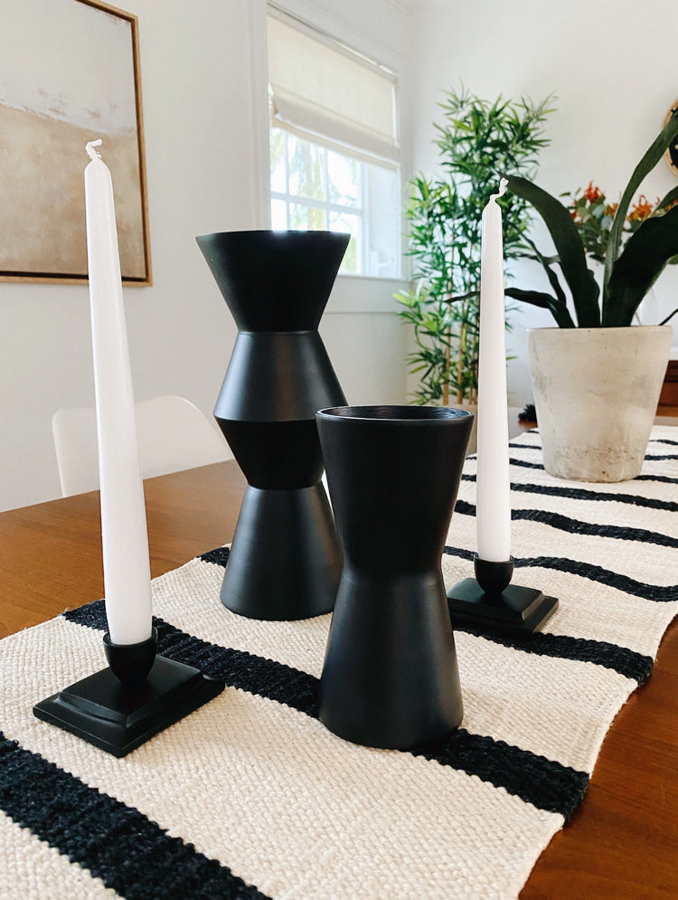 Enjoy the presence of natural lights with this modern set of 2 candlestick holders. Candle sticks accent the decor into a welcoming space and offer a contemporary take on a classic design. Ideal for displaying on tabletop surfaces in the dining table, consoles or as a mantle decor. Crafted of metal frame, available in black and gold finish.