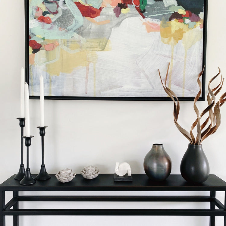 Enjoy the presence of natural lights with this elegant set of 3 candlestick holders. Candle sticks accent the decor into a welcoming space and offer a contemporary take on a classic, modernist design. Ideal for displaying on tabletop surfaces in the dining room, consoles or as a mantle decor. Crafted of metal frame, available in matte black and gold finish.