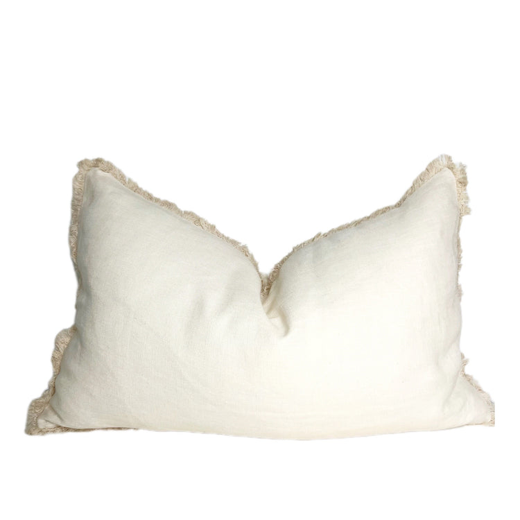 Fringe Linen Lumbar Pillow Cover 12"x20", Neutral Farmhouse Pillow, Soft Decorative Linen Pillow Case, Bohemian Pillow, Boho Throw Pillow